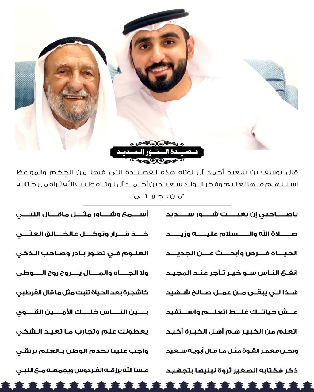 Haj Saeed Bin Ahmed Al Lootah is a self-made businessman who progressed from being a seafarer and trader, in his early days, to an accomplished tutor, author, economist, banker, entrepreneur, businessman and visionary community leader. His zest for life and fervent adherence to the core values of Education, Cooperation and Economy, power an endless desire to ‘make things better’ by empowering people to excel at everything they do. He realized the need to build permanent houses and ventured into construction. His “capital” at that time was his skills, knowledge and hard work. He laid the foundation of S.S.Lootah Contracting Company as a joint venture with his brother Sultan in 1956. With the enduring values of education, cooperation and economy set as the foundations of his work, Haj Saeed Bin Ahmed Al Lootah started a number of business as well as not-for-profit education and research ventures, with an aim to serve the people of the United Arab Emirates. Thanks to his vision and leadership our home grown ventures continue to demonstrate unique values that extend well beyond its functional benefits creating greater economic, social and environmental benefits for people in the United Arab Emirates and beyond.